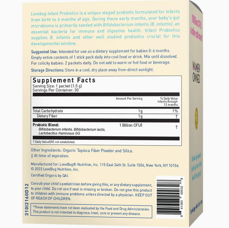 A safe and gentle probiotic specifically formulated for your infant from 0-6 months. Easy-to-use powder stick packs. Formulated with the #1 most clinically studied strain LGG and the super strain for babies, B. infantis, to help create the ideal balance of good bacteria in your infant's digestive tract.