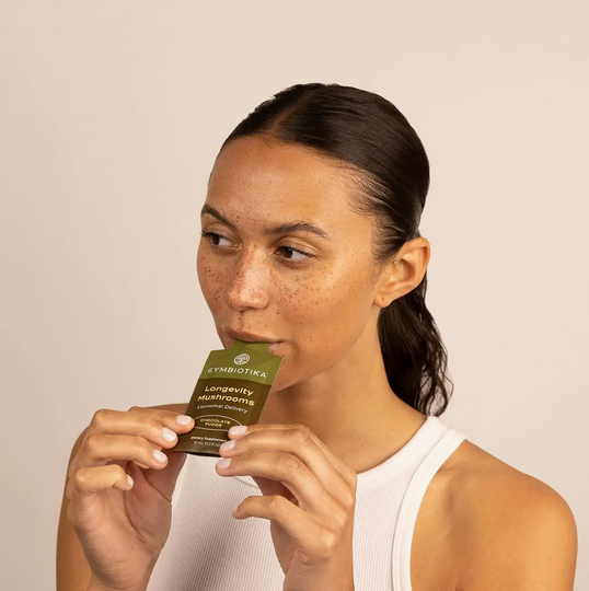 Cymbiotika’s Longevity Mushrooms contain 6 organic mushrooms with clinically proven benefits. Mushrooms are nutrient-dense foods that contain powerful compounds such as beta-glucans, triterpenes, metabolites, L-Ergothioneine, vitamin D, prebiotics, digestive enzymes, chelated minerals, amino acids, proteins, and b-vitamins. This array of complex nutrients contributes to overall health and immune support function.