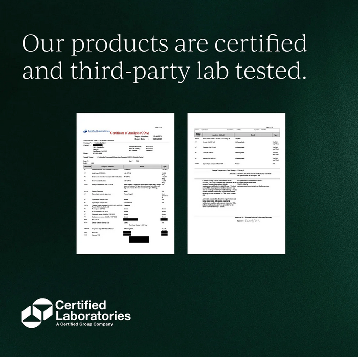 Tested for purity and safety by Certified Labs. Verified absence of harmful bacteria, heavy metals, and contaminants. Product meets all quality standards, with clear labeling and stability checks for your peace of mind.
