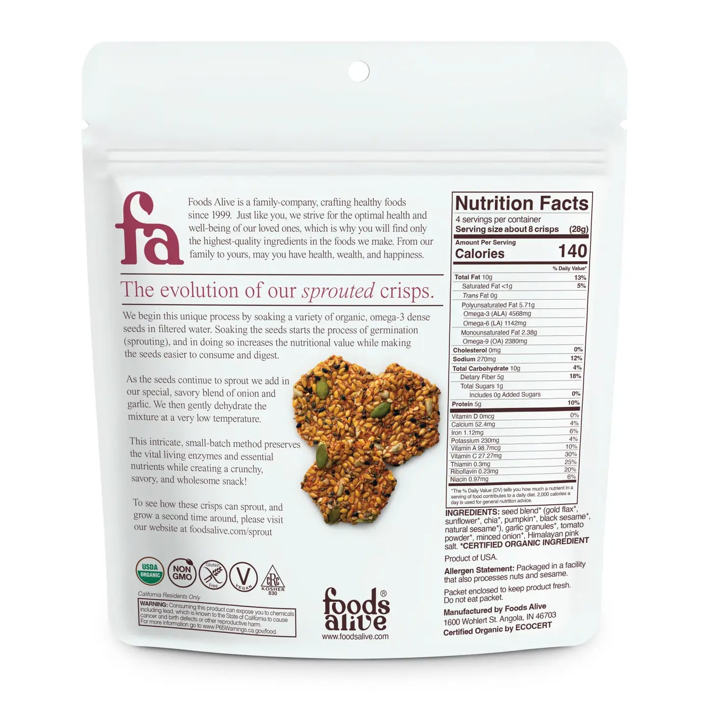 With superior taste, texture, and clean plant-based organic ingredients you are sure to love our updated sprouted crisps. Since these crisps contain fiber and protein, they are the perfect snack to give your body the energy and nutrition it's looking for.