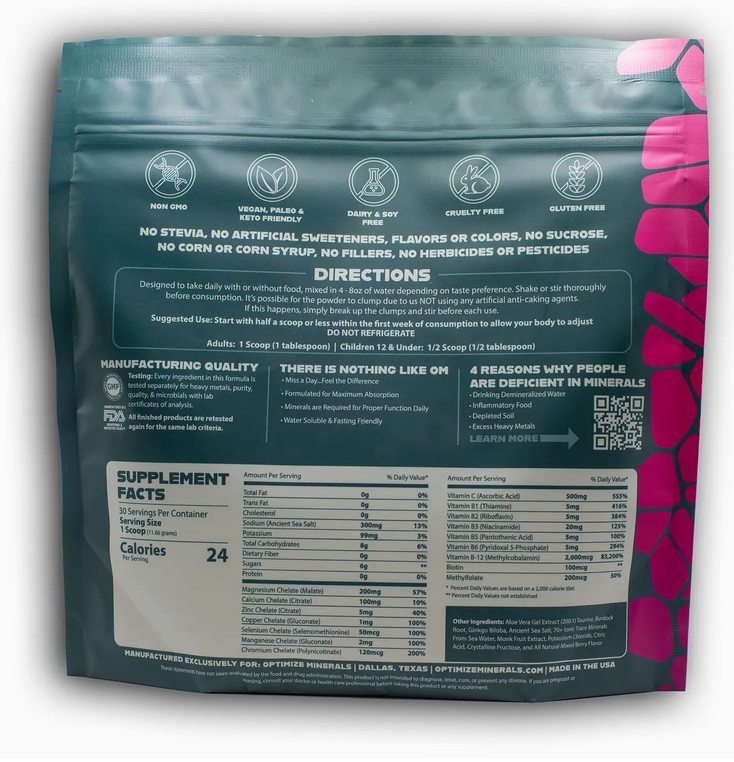 Minerals play a critical role in nearly every system in your body. But modern diets—and even “healthy” foods—often lack the mineral density our bodies need. Optimize Minerals fills those gaps naturally, using clean, bioavailable ingredients that are easy to absorb and easy to use.