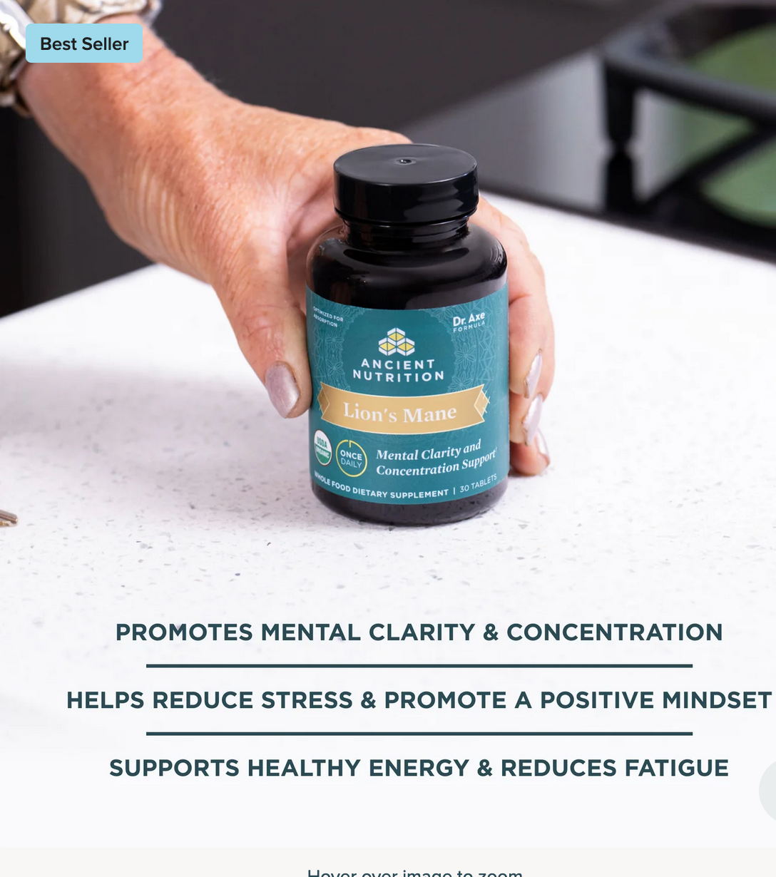 The first and only USDA Certified Organic mushroom tablets available today. This combination of organic lion’s mane and ashwagandha is designed to help clear your mind and keep you focused.†