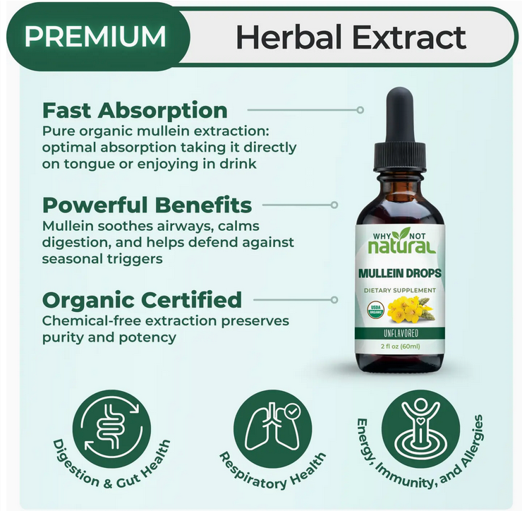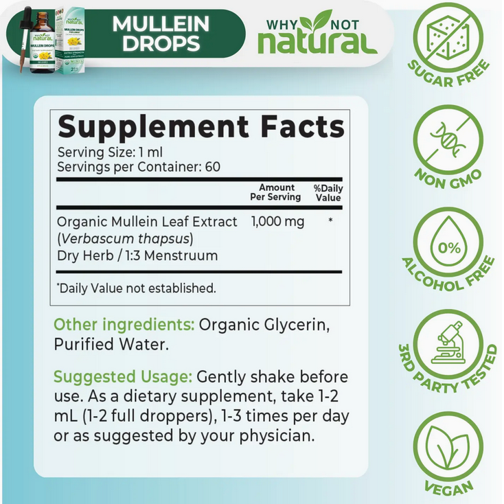 Certified Organic: Our USDA organic mullein contains only 3 ingredients. Breathe freely, knowing our lung cleanse drops are a traditional herbal remedy that’s pure, potent, and has no harmful additives.
