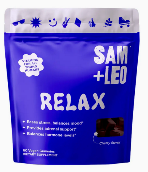 SAM+LEO RELAX Gummy Vitamins are a delicious and convenient way to support your child’s daily wellness routine. Formulated with natural ingredients like Ashwagandha, Vitamin D2, and Zinc, these gummies complement a balanced diet and active lifestyle.
