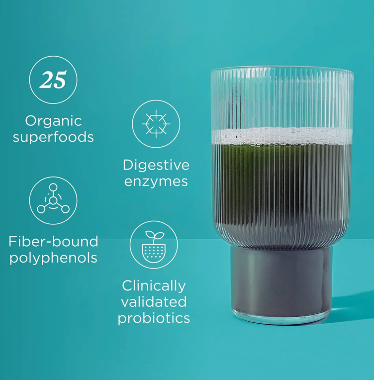 These convenient stick packs bring you 25 organic greens, fruits, herbs and mushrooms as well as a science-backed Bloat Support† Blend to support your gut health in as little as 30 days. * Delivers targeted gut relief† * Supports healthy gut transit time† * Promotes energy metabolism†
