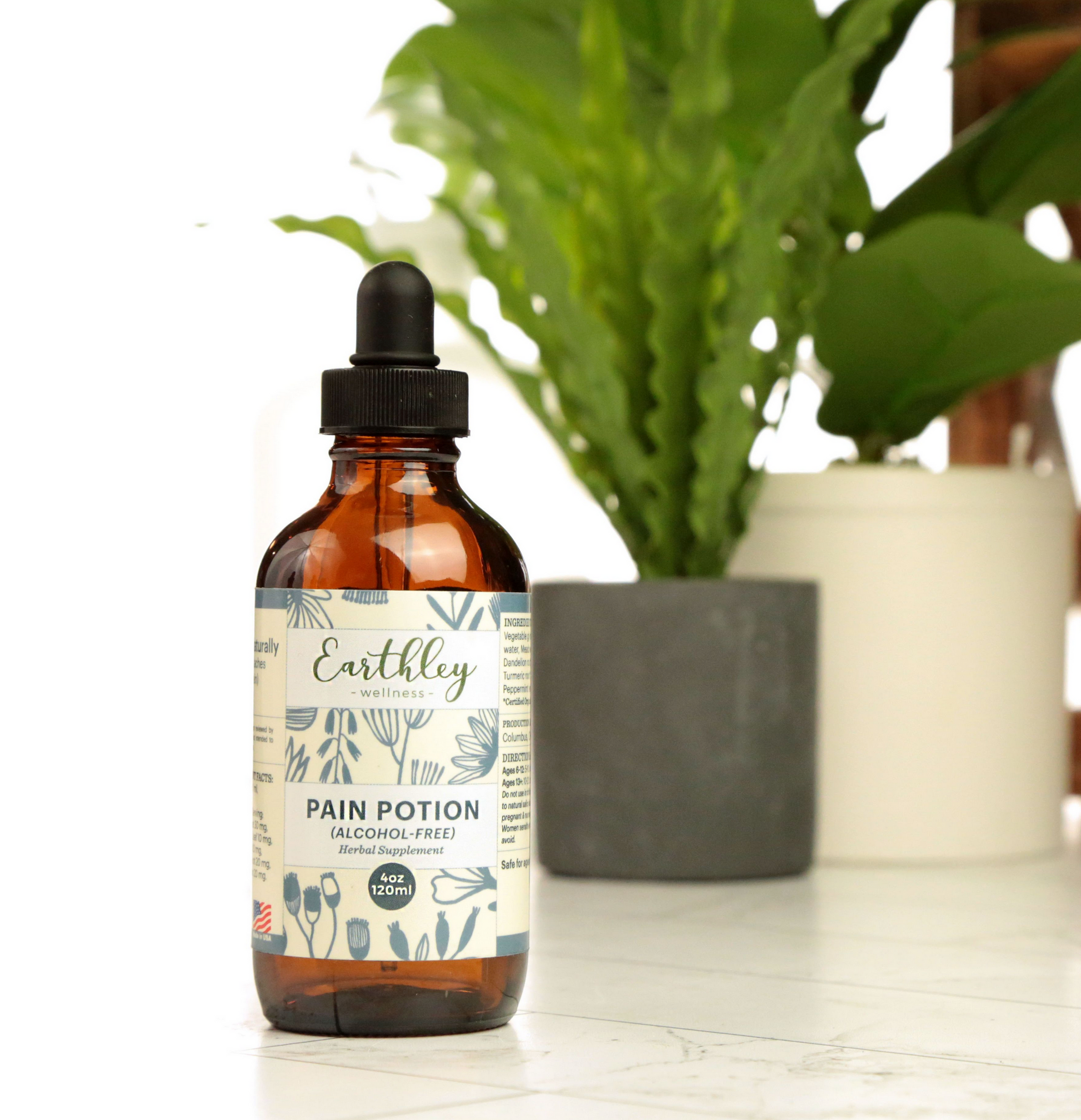 Pain Potion is formulated with meadowsweet (an herb that has natural anti-inflammatory properties and helps relieve discomfort), dandelion root (a powerful antioxidant that promotes healthy blood sugar levels), mullein leaf (helps to relax muscles and relieve discomfort), peppermint leaf (promotes liver and lung health making nutrients easier to absorb), and turmeric root (anti-inflammatory and relieve joint discomfort). These powerful herbs combine to provide you with effective relief from discomfort.