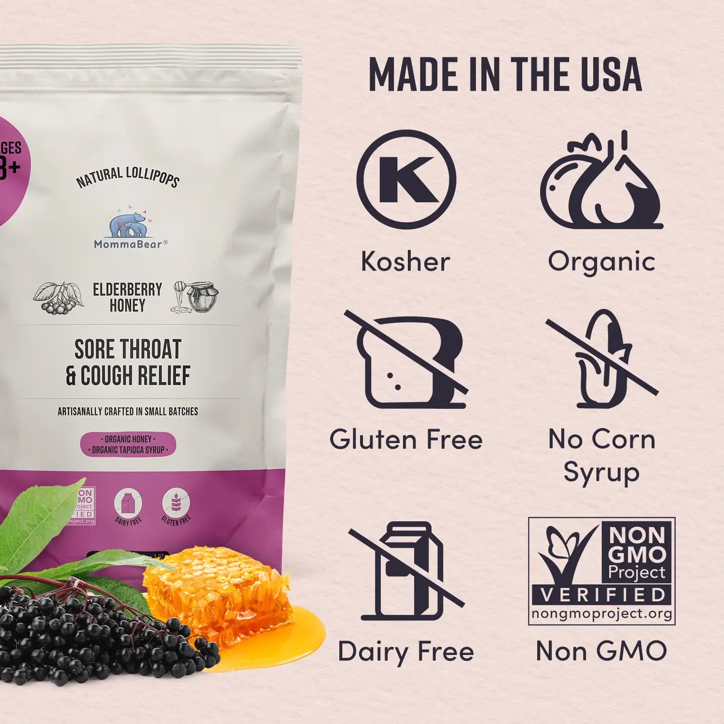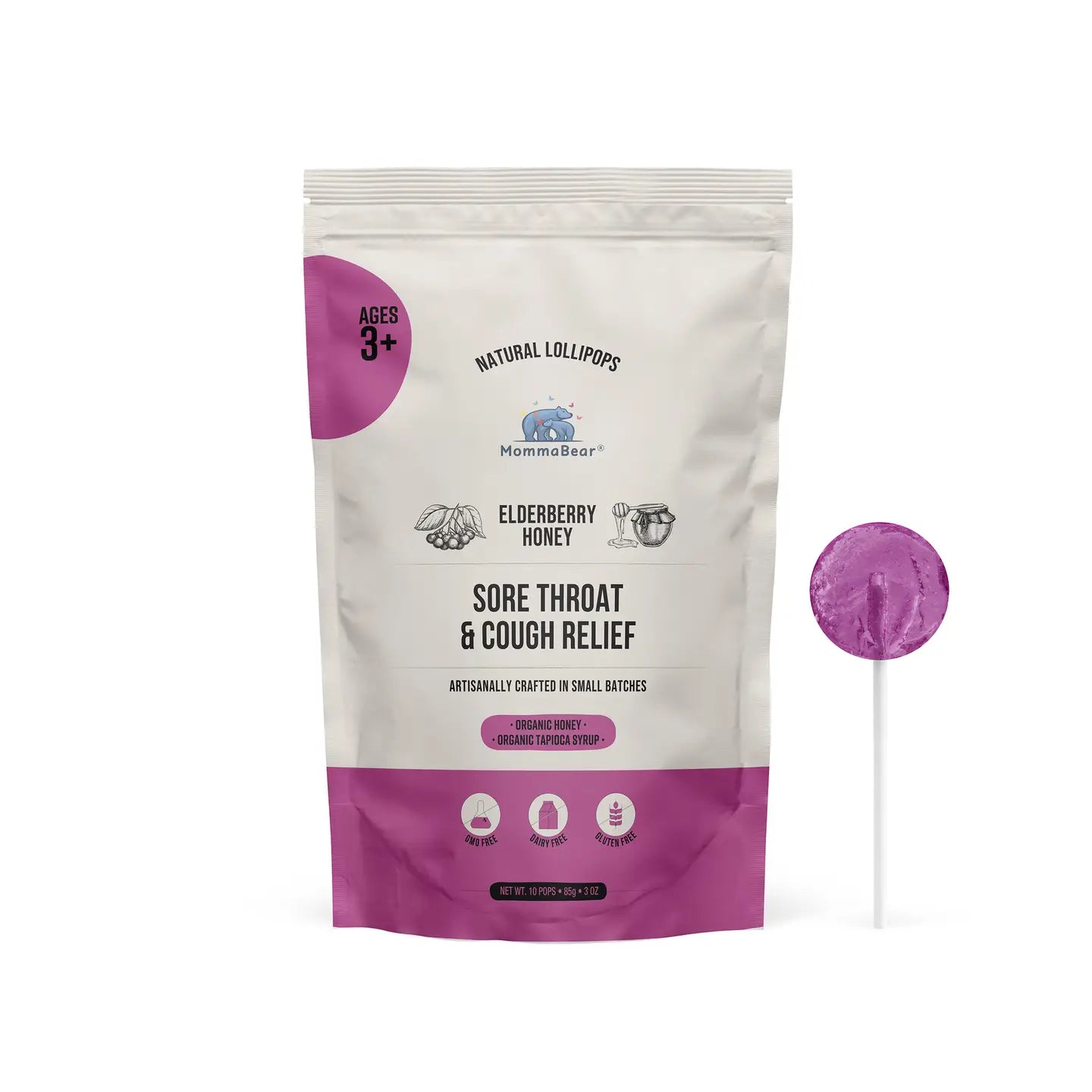 Elderberry & Honey lollipops to help soothe the symptoms of sore throat and cough. Artisanally crafted in small batches by using simple organic ingredients, our lollipops are perfect for on-the-go. Ease sore throat and coughs with these sweet organic homeopathic lollipops.
