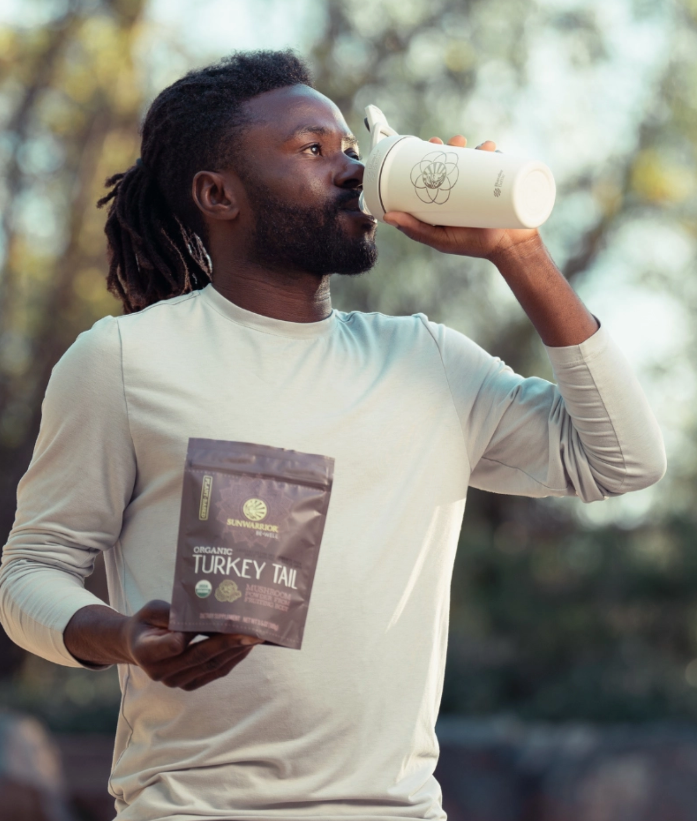 The Be Well Organic Turkey Tail Mushroom Powder Drink Mix is your new daily ritual must-have. Let’s talk turkey. Strengthening your immune system is a priority, and that's where Organic Turkey Tail Mushroom powder comes in. Turkey Tail mushrooms are packed with potent antioxidants and prebiotics, supporting immune health and reducing inflammation. Krestin (PSK) and Polysaccharide Peptide (PSP) in turkey tail mushrooms activate and inhibit specific immune cells, promoting a balanced immune response.