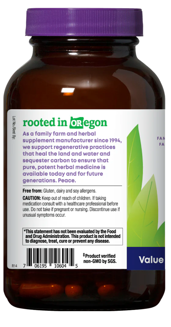 Turmeric’s antioxidant properties provide protective nutritional support to the cardiovascular system, joints and liver. Standardized Turmeric extract supplies enhanced levels of the principally active group of constituents called curcuminoids. Scientific studies show addition of BioPerine® improves absorption and increased bioavailability of Curcumin.*