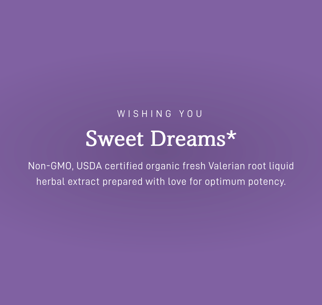 Non-GMO, USDA certified organic fresh Valerian root liquid herbal extract prepared with love for optimum potency.